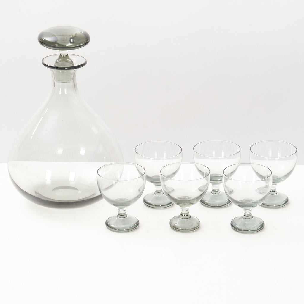‘Ramona’ Smoked Glass Carafe & Wine Glasses by Per Lütken for Holmegaard, Denmark
