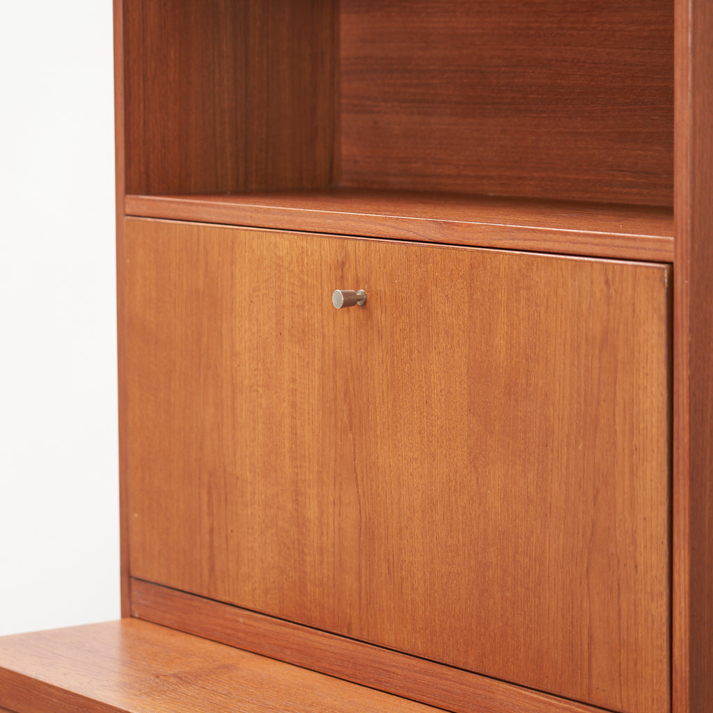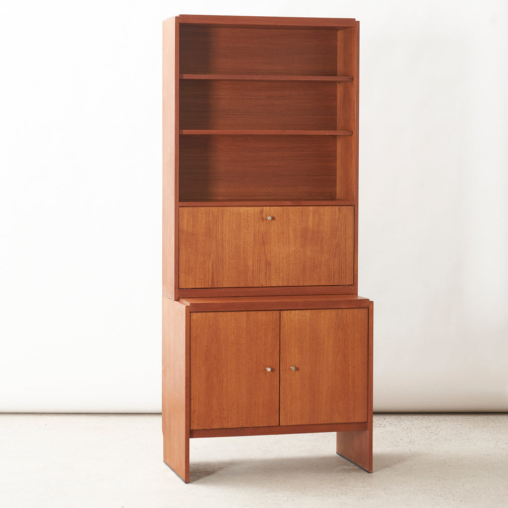 Teak Bookcase w/ Drop-Down Cabinet