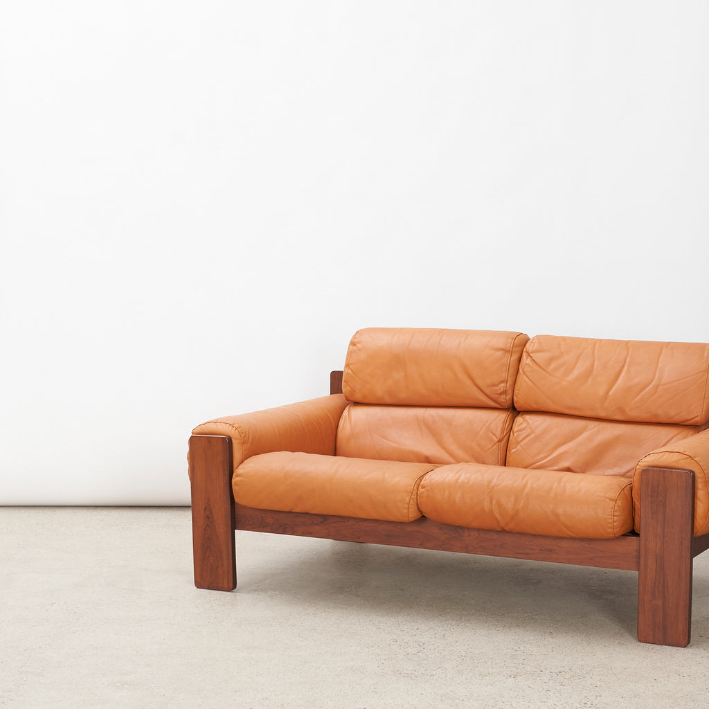 Rosewood & Leather Loveseat by Uu-Vee Kaluste Oy, Finland