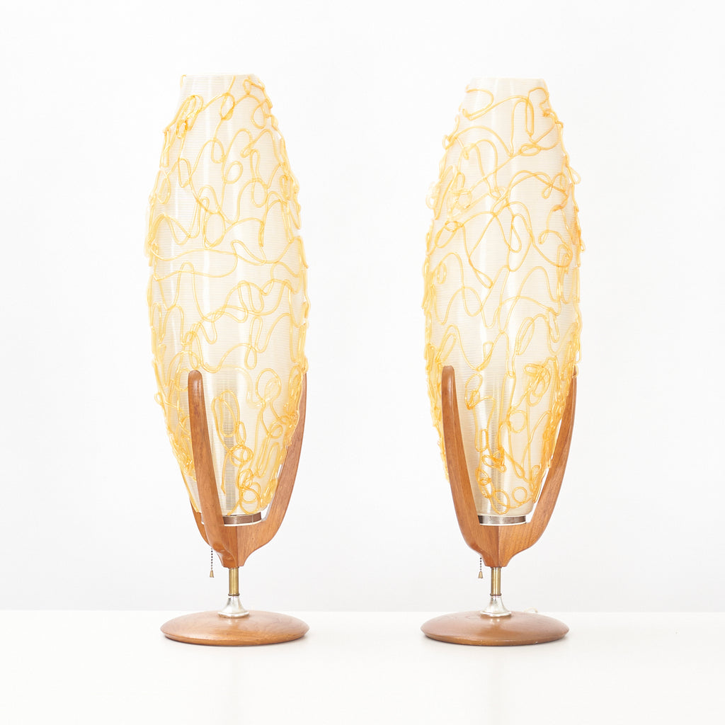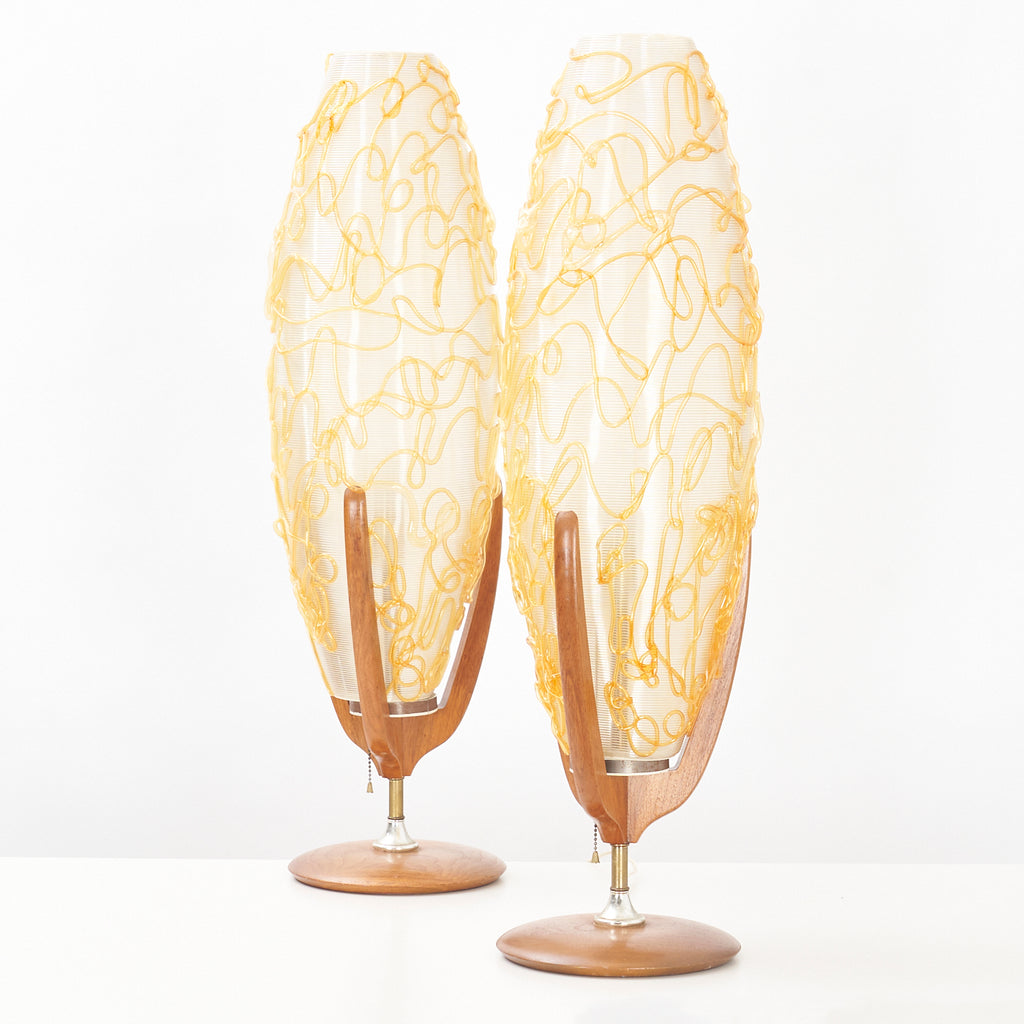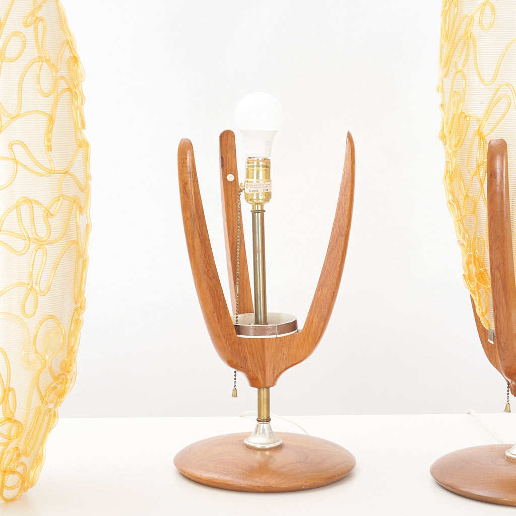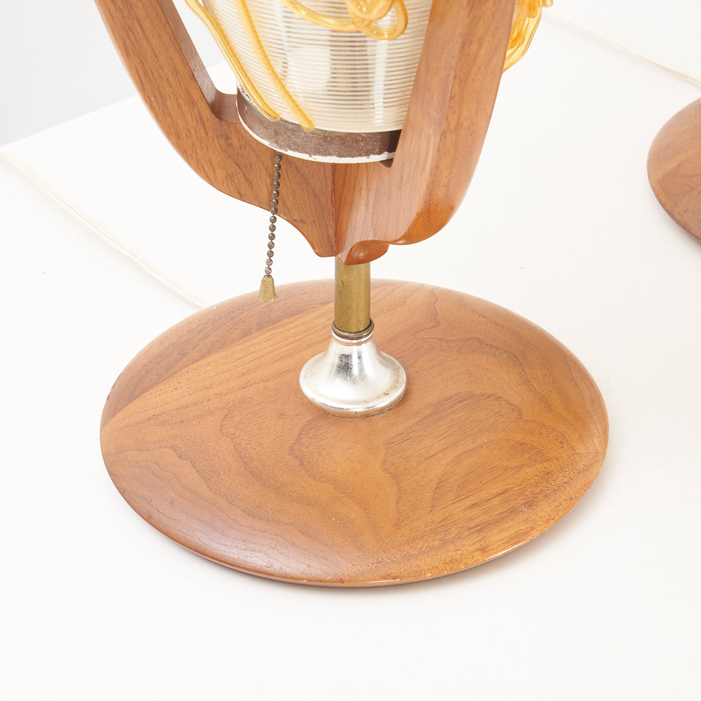 Pair of Walnut Table Lamps w/ Acrylic Shades