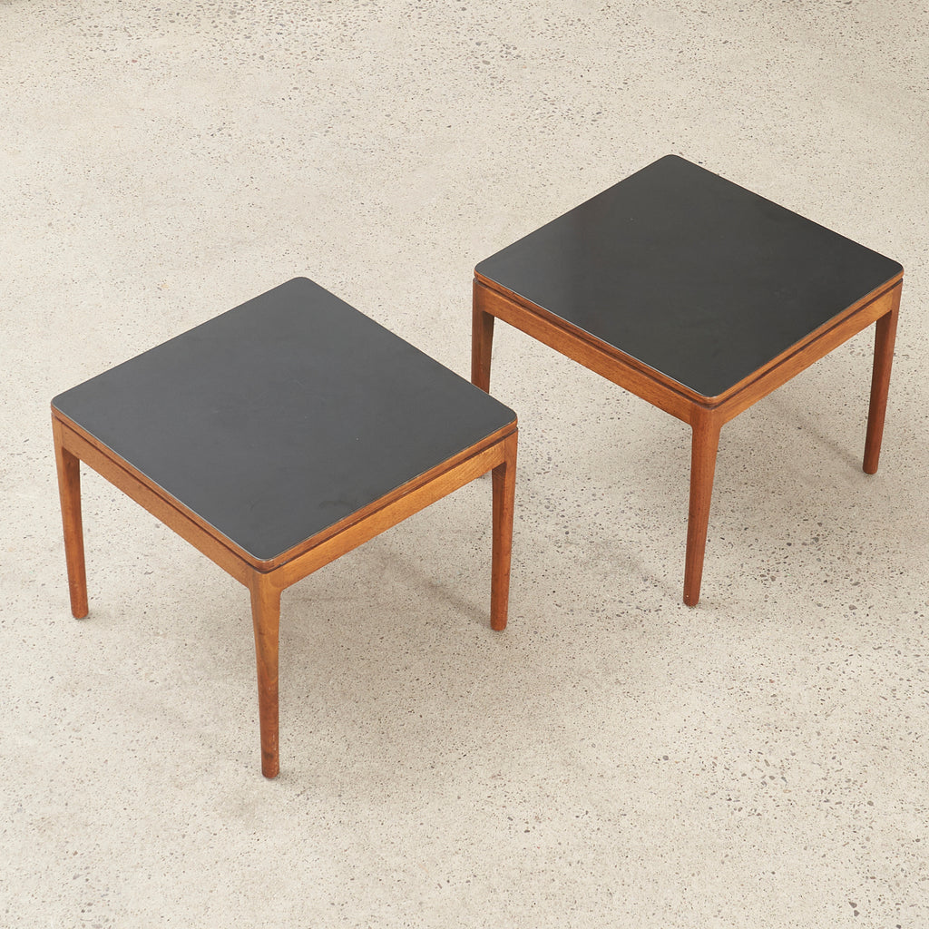 Pair of Square Walnut Side Tables w/ Laminate Tops