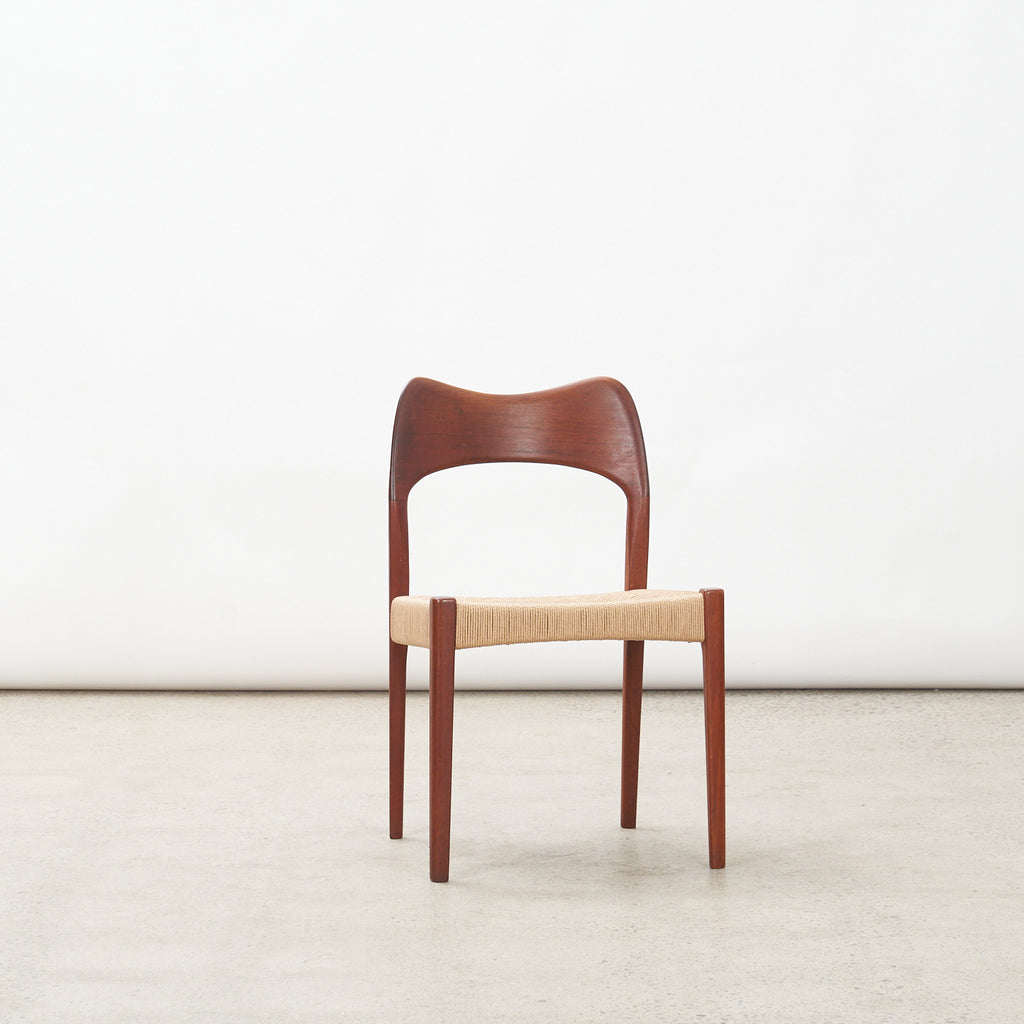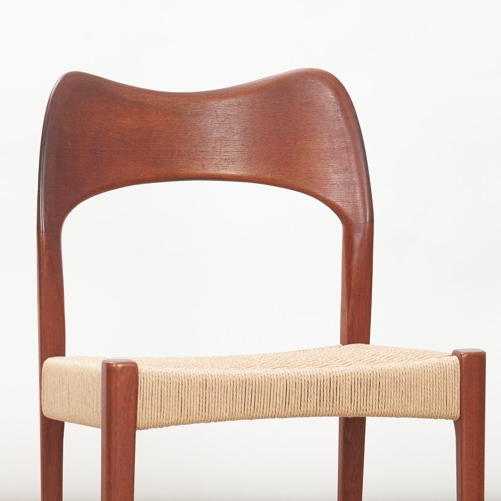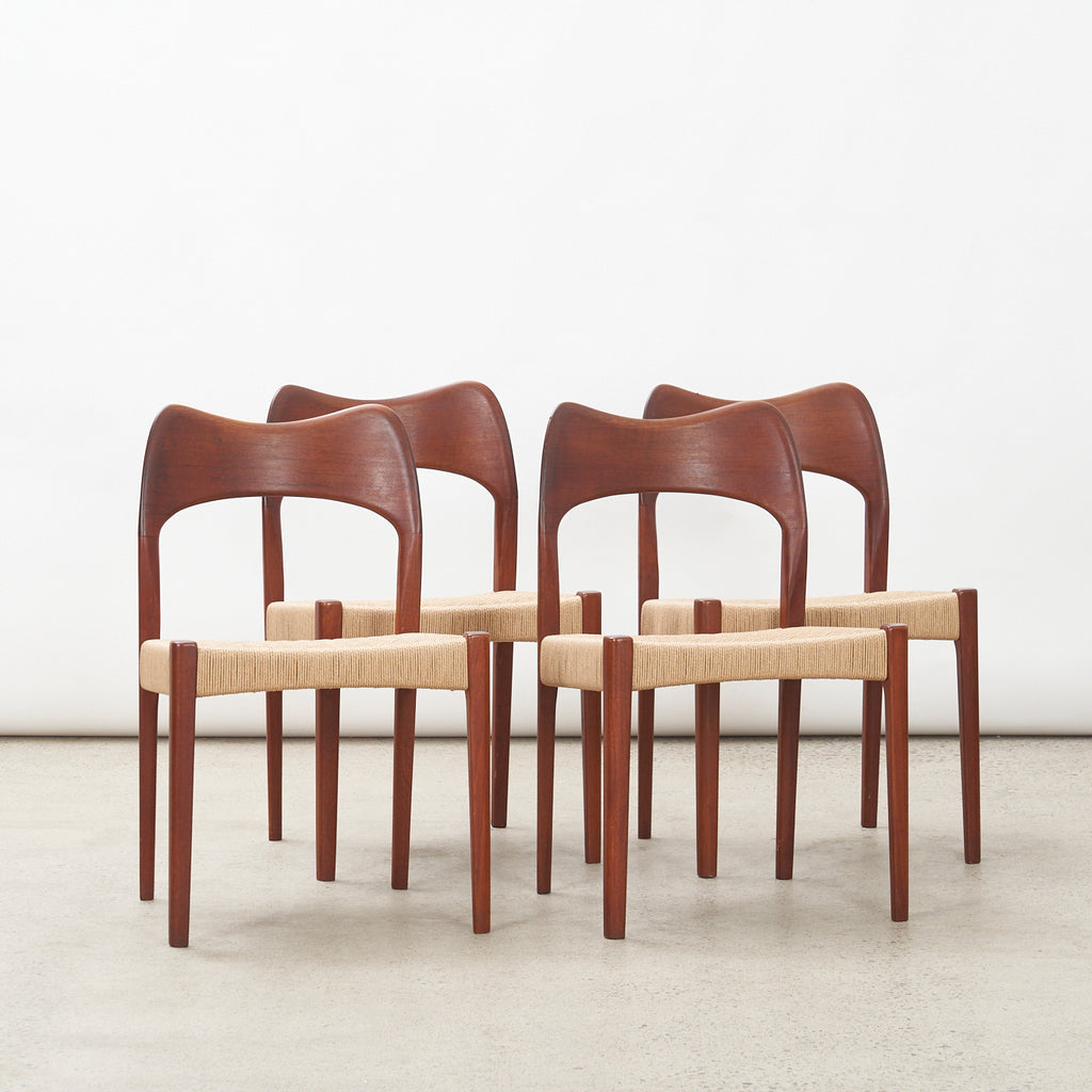Set of 4 Teak & Danish Cord Dining Chairs by Arne Hovmand Olsen for Mogens Kold, Denmark