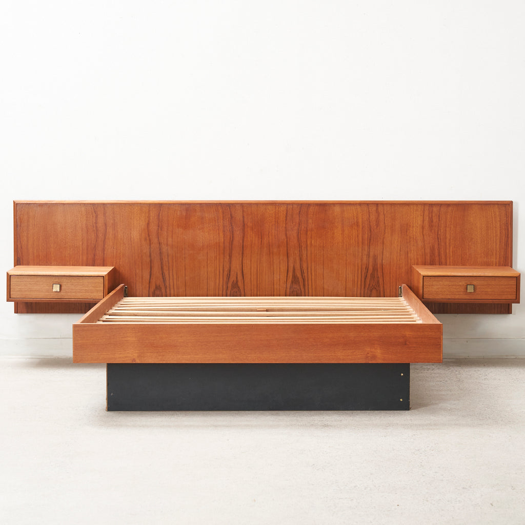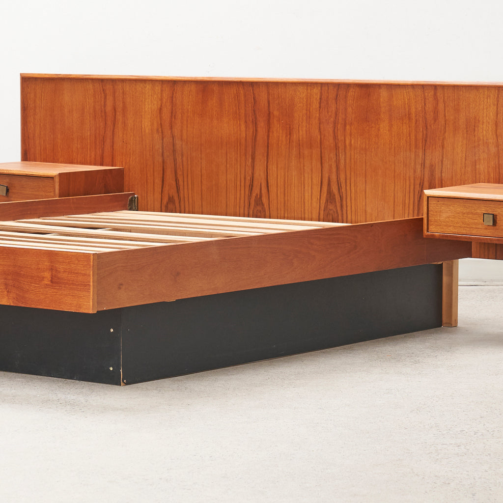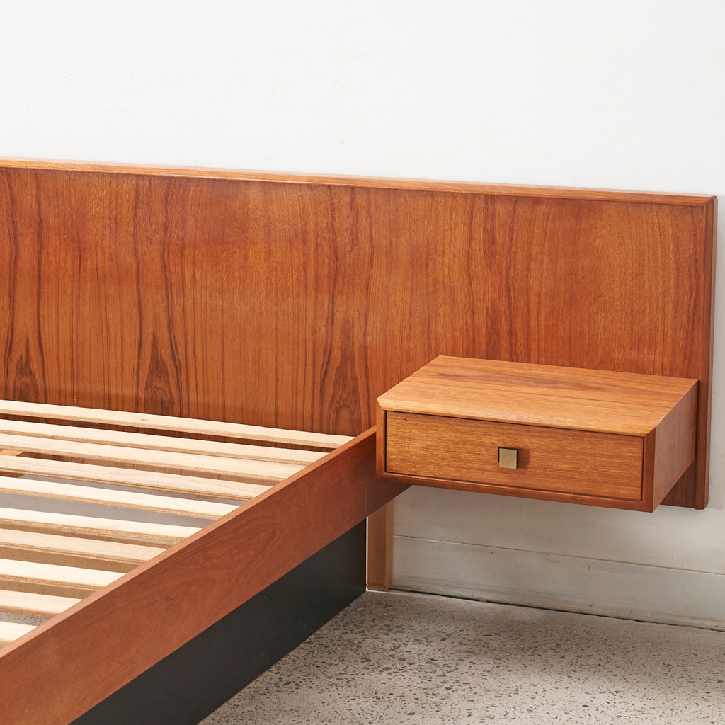 Teak Double Bed w/ Floating Nightstands