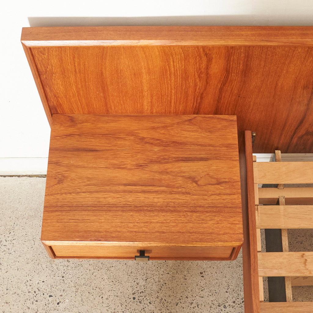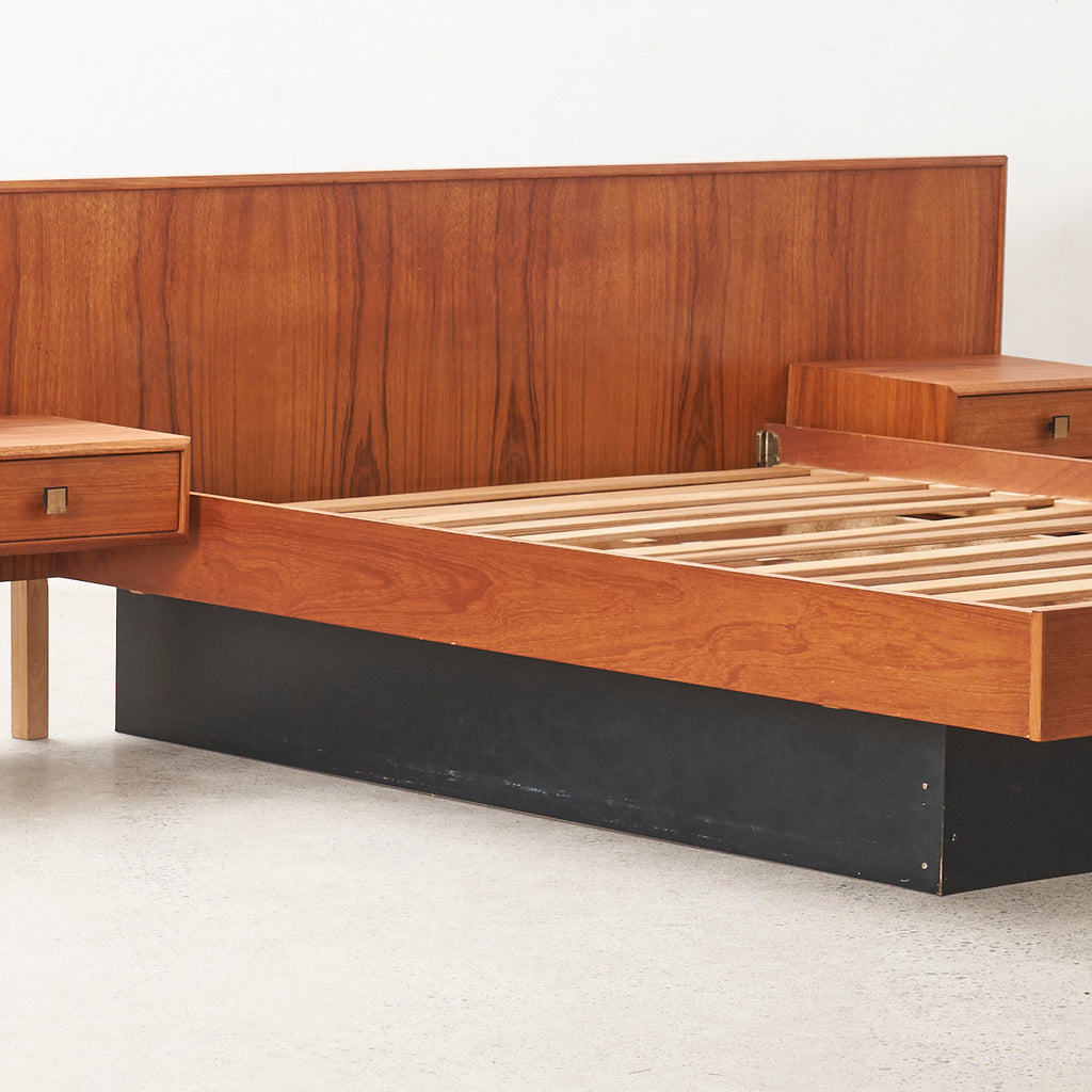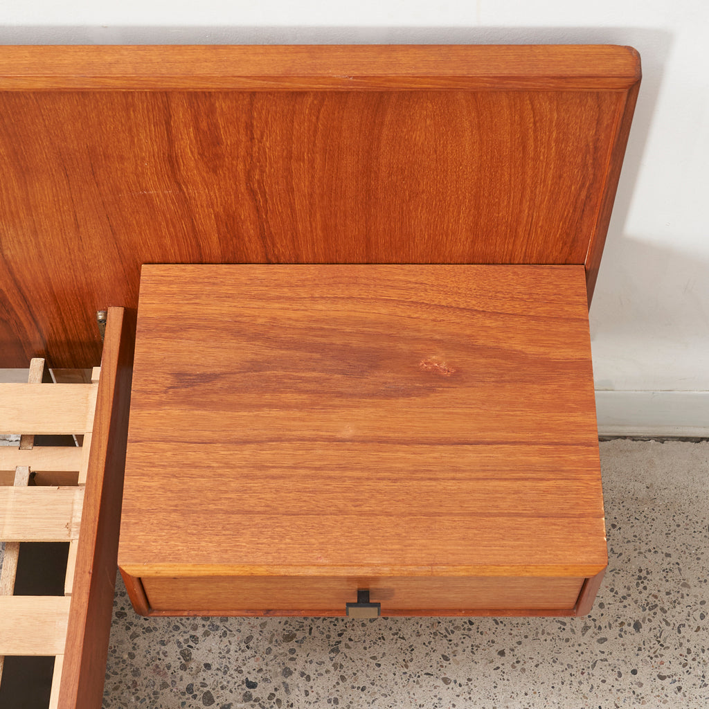 Teak Double Bed w/ Floating Nightstands