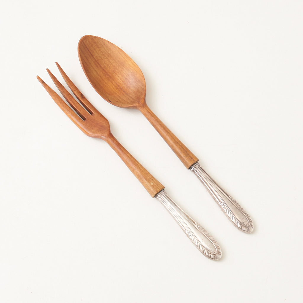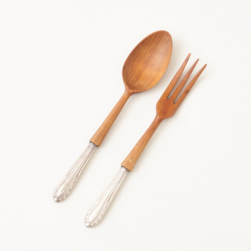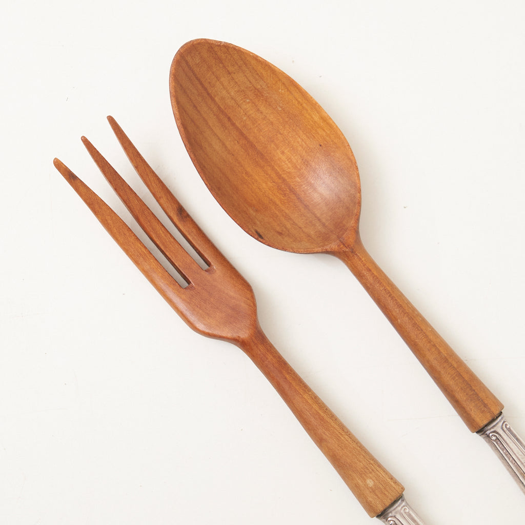 Teak & Sterling Silver Salad Serving Set