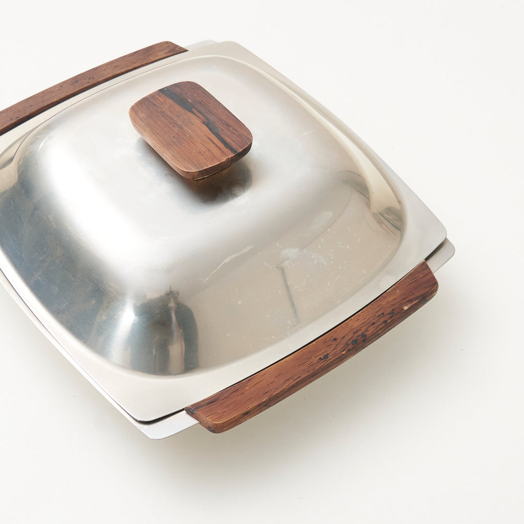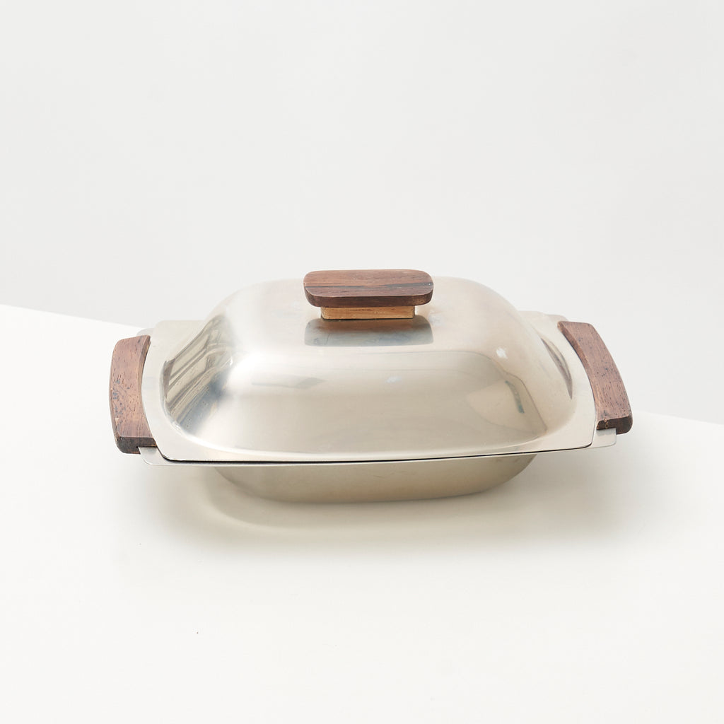 Vintage Stainless Steel & Wood Covered Dish, Denmark